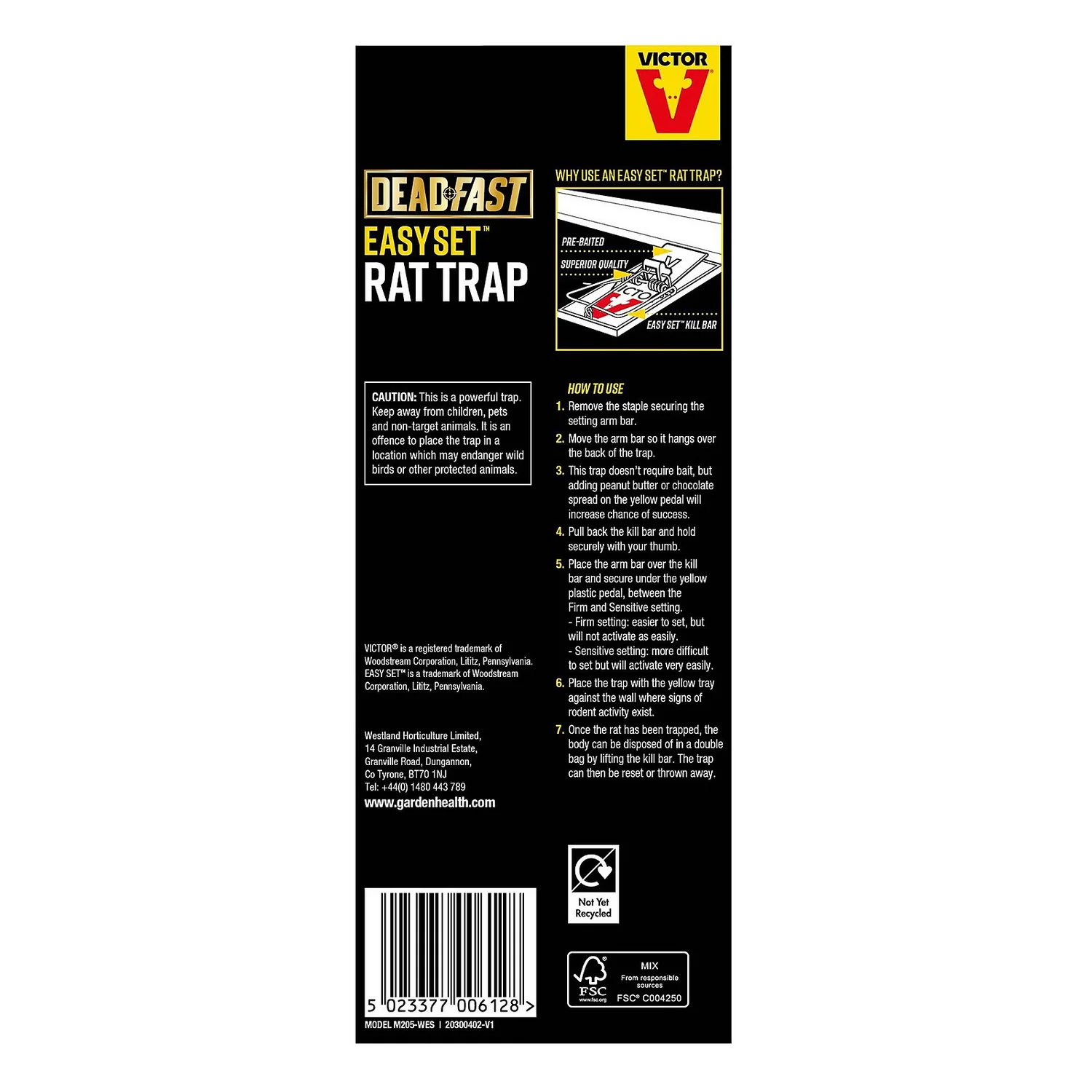 Deadfast Easy Set Rat Trap is a wooden wire snap trap with a pre-baited plastic cheese pedal for even more effective rat control.