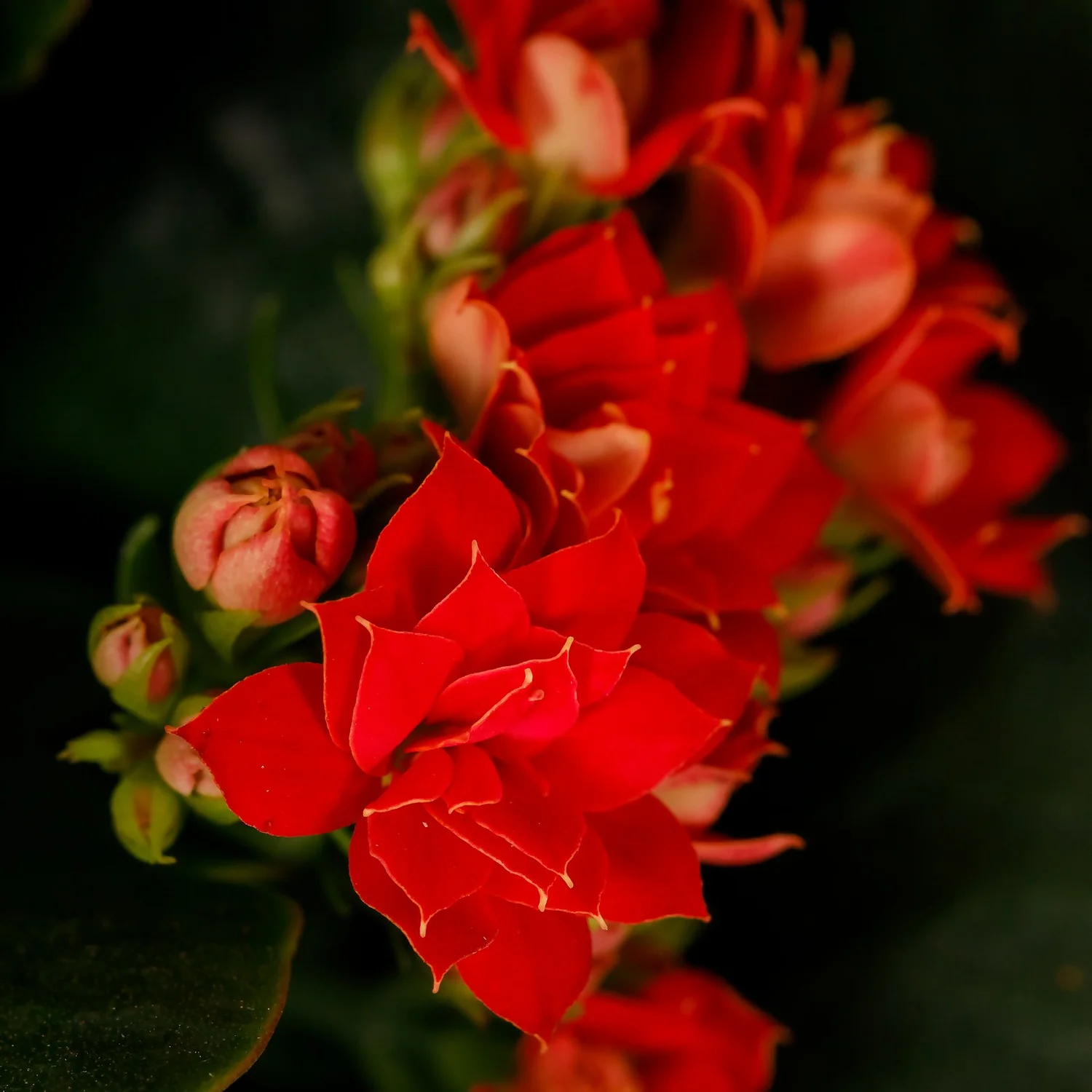 A beautifully wrapped brightly coloured Kalanchoe, blooming with flowers. Wrapped in stylishly patterned cell and hand tied with a forest green ribbon. The Kalanchoe blooms will last weeks and weeks and with a little TLC can be the centre piece in the room.