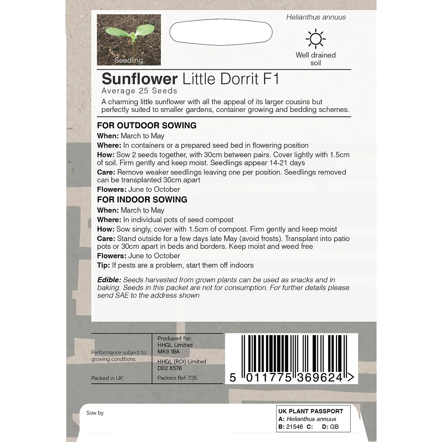 | Guarantee | Standard seeds, UK rules and standards. Performance subject to growing conditions. |