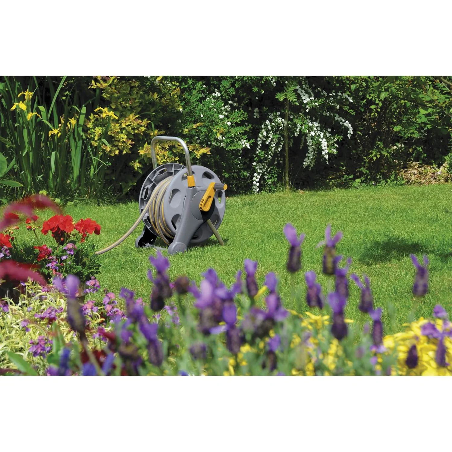 This Hozelock 45m hose reel comes with 25 metres of 12.5mm braided Hozelock multi-purpose hose. The compact size and hard wearing metal handle makes movement around the garden a breeze, it is extra wide for stability and has been designed so the hose is easy to rewind.