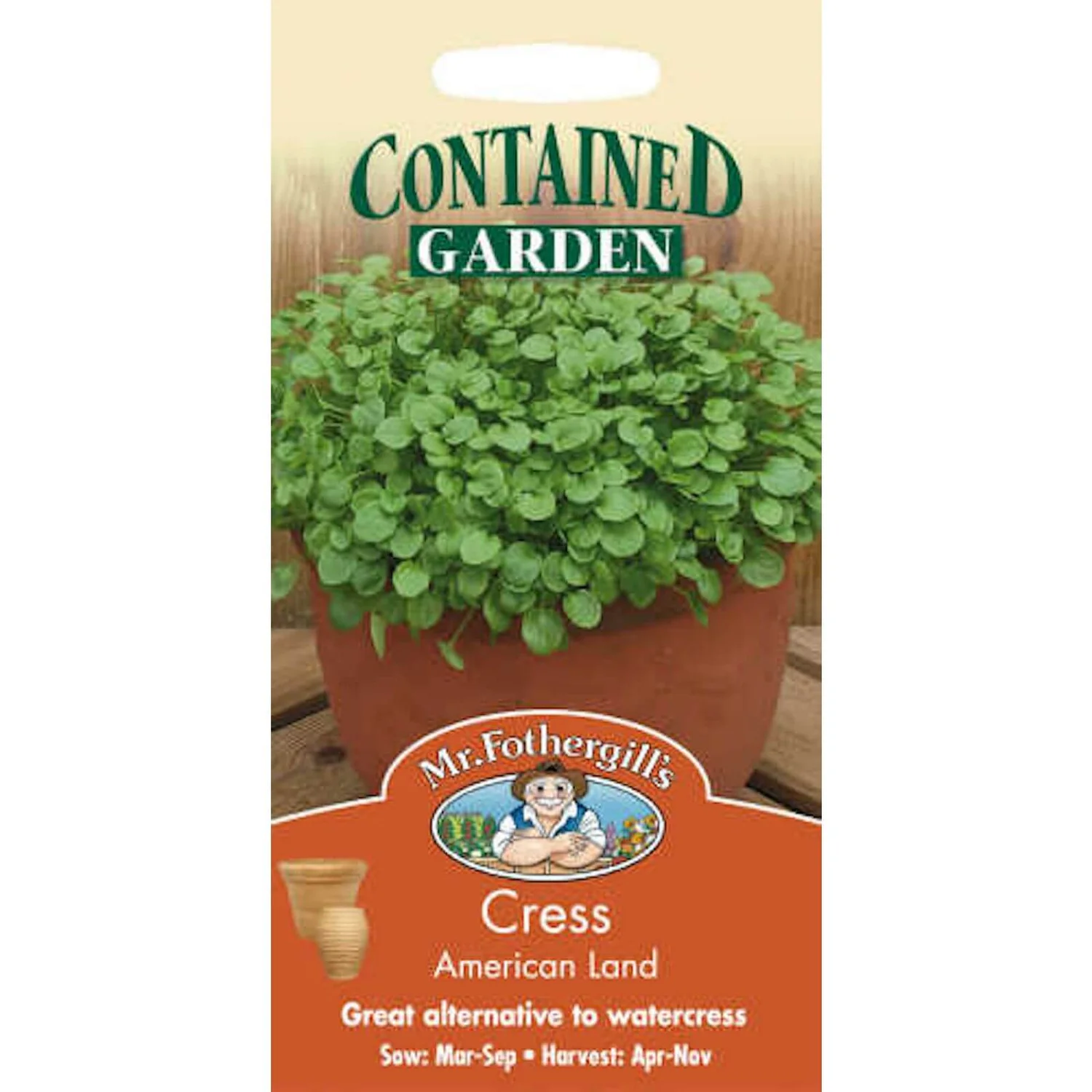 Cress American Land (Barbarea verna) is an alternative to watercress with a fresh peppery flavour. Great for patio pots.