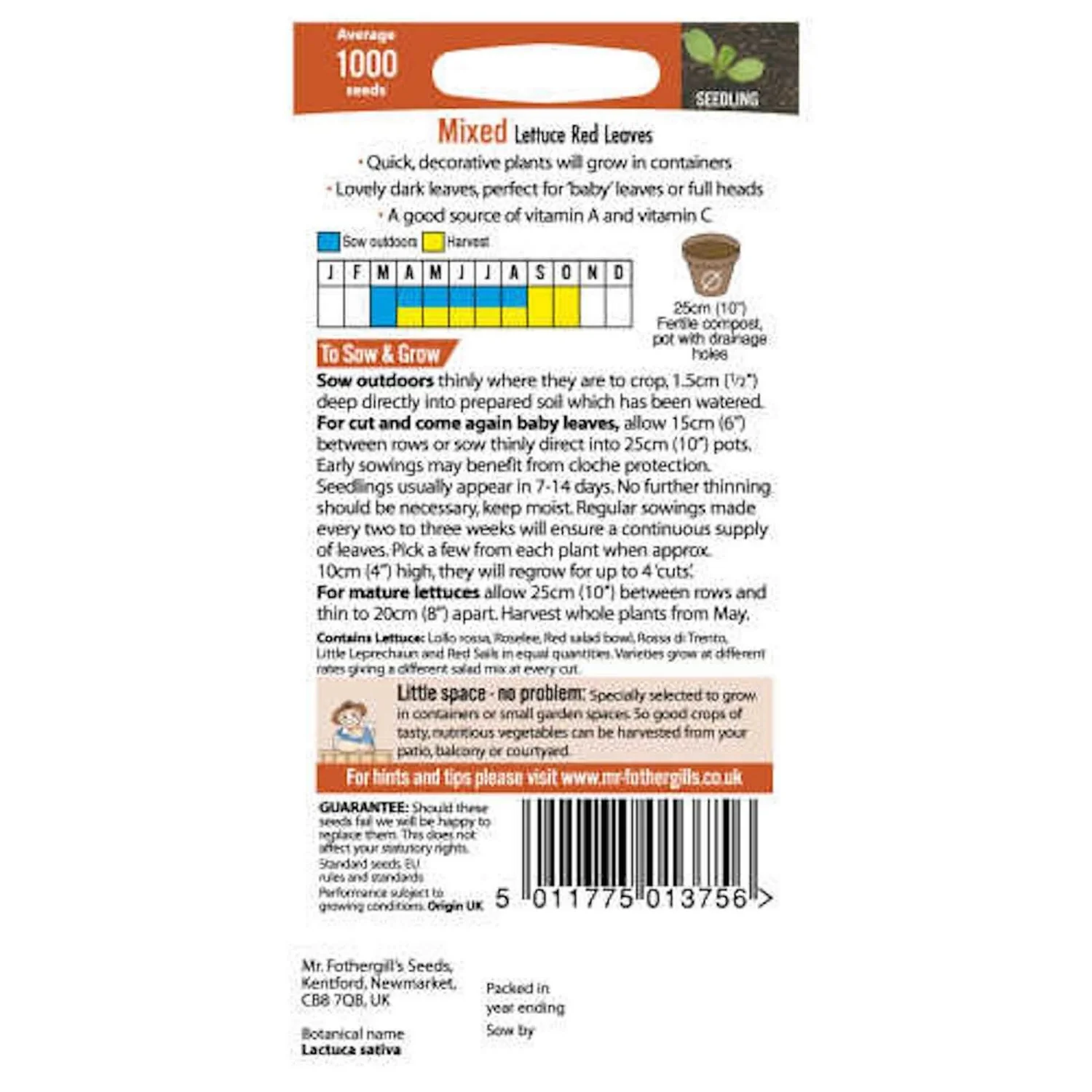 Mixed Lettuce Red Leaves (Lactuca sativa) is a fast and simple to grow diverse mix with red leaves. Great for patio pots.