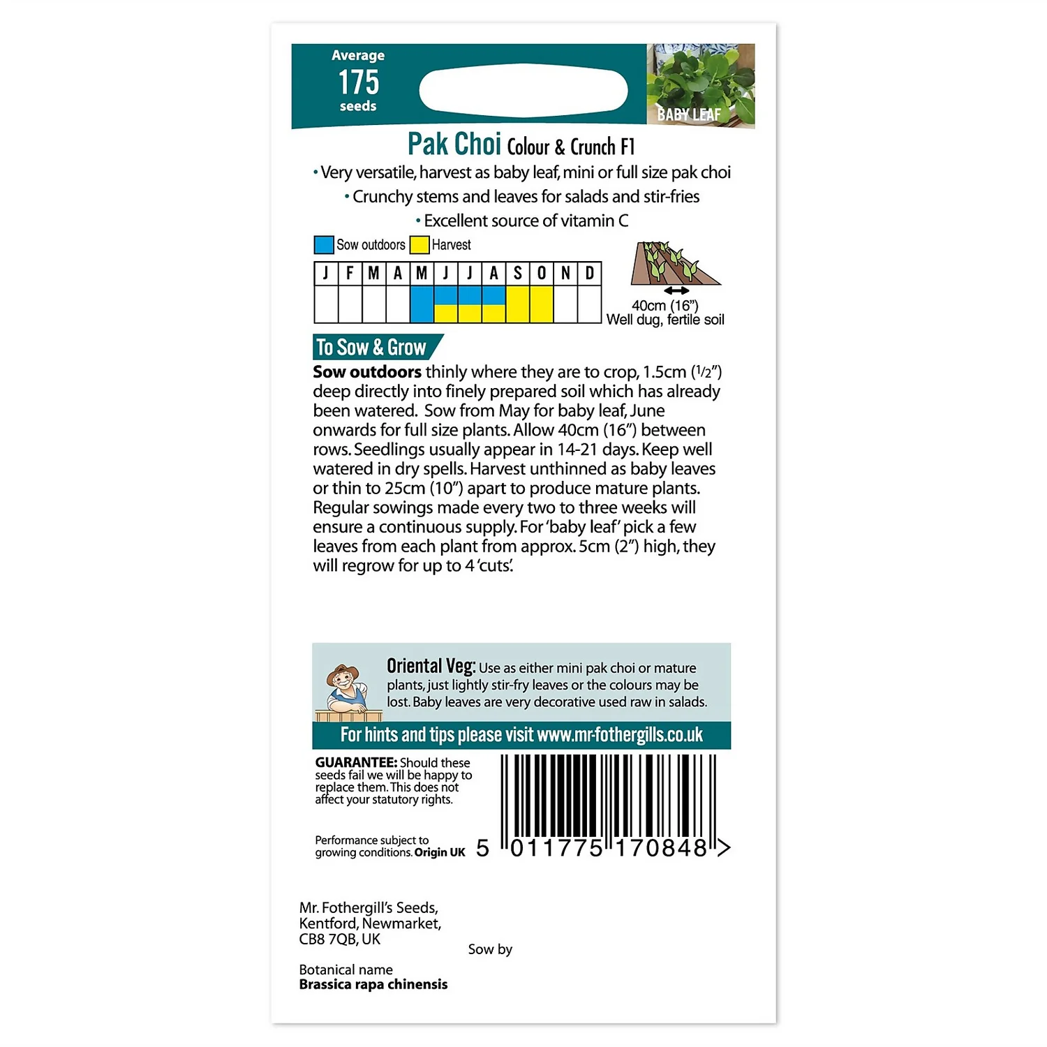 Mr. Fothergill’s Pak Choi Colour & Crunch F1 Seeds