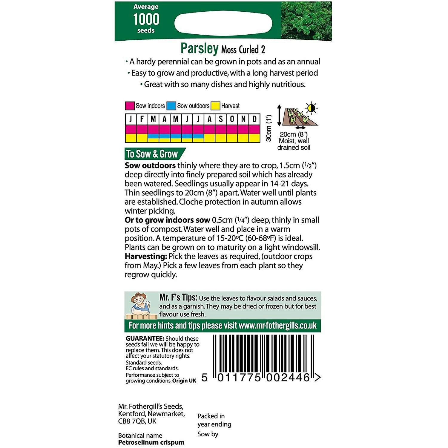 Mr. Fothergill’s Parsley Moss Curled 2 (Petroselinum Crispum) Herb Seeds