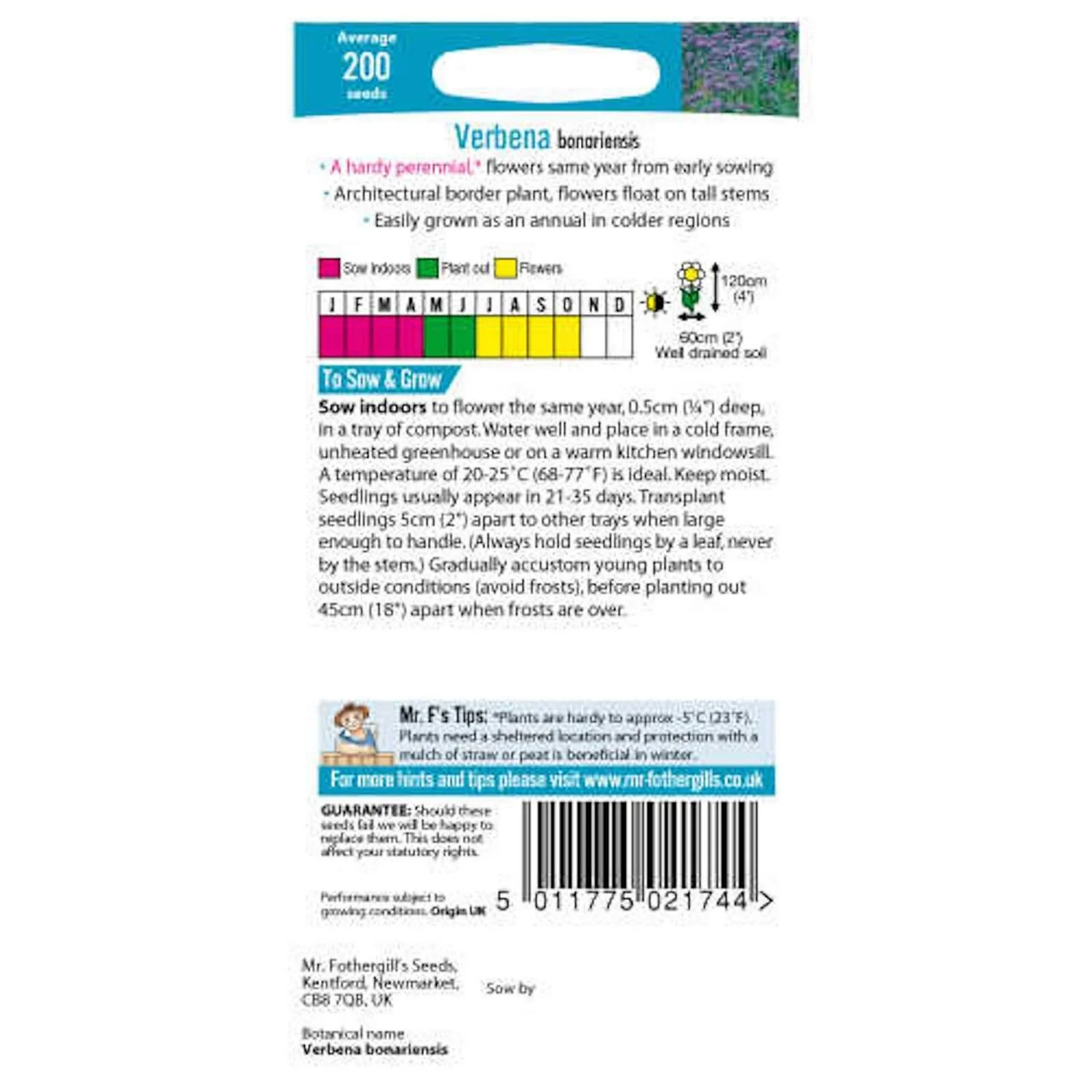 Verbena Bonariensis is a tall stylish and architectural with flowers that appear to float on the breeze. A favourite for drifts or dot planting in mixed borders.