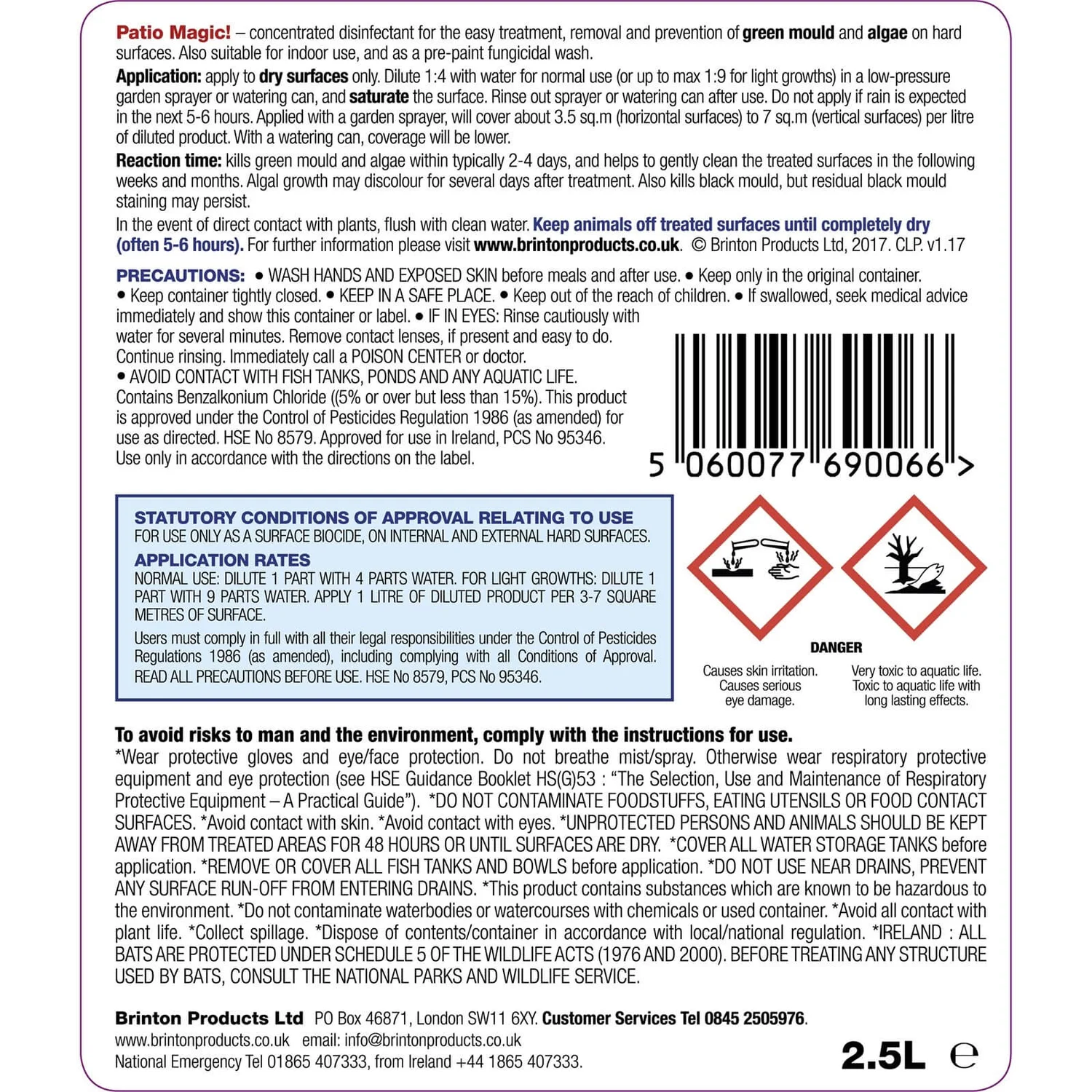 Patio Magic can be used on all outdoor hard surfaces including paved areas, patios, paths, driveways, walls, decking, fencing, greenhouse or conservatory glass, perspex and garden furniture.