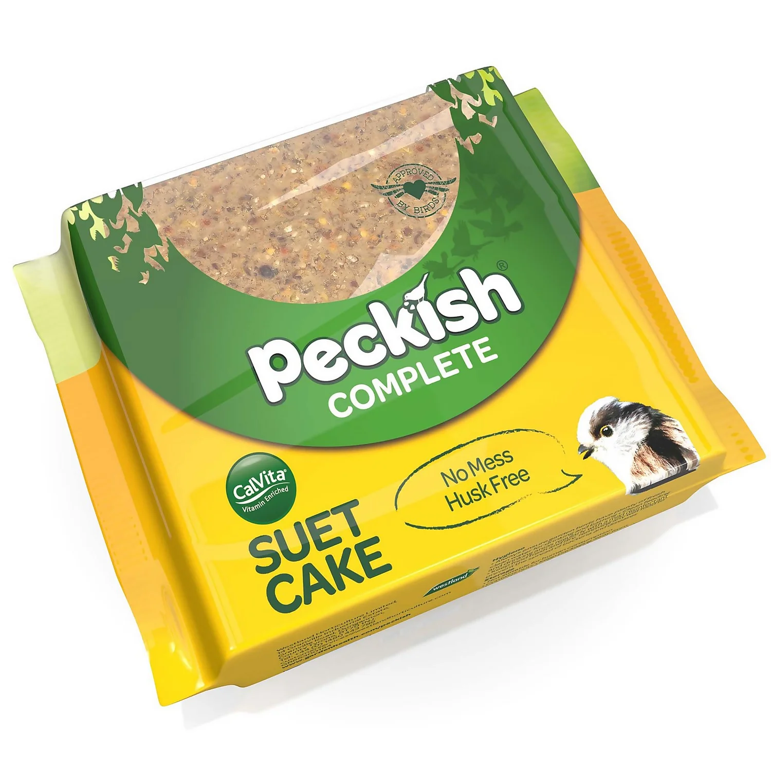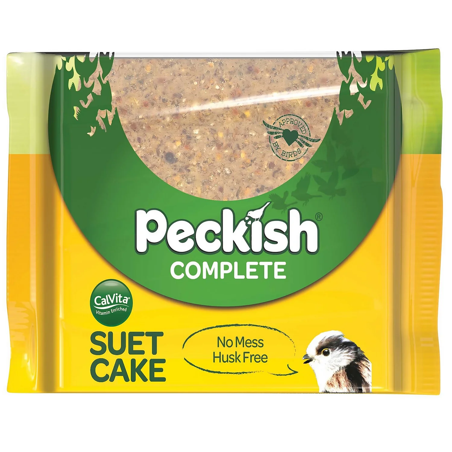 Peckish complete suet cakes contain 12 types of seeds which have had any husks removed to prevent mess and waste. These 12 types of seed long with the beef tallow used to make the binding suet has been proven to attract the UK s top 10 garden birds. This suet cake can be used in a feeder, on the ground or on a bird table and provides birds with a high energy, nutritional food to fuel birds for longer.