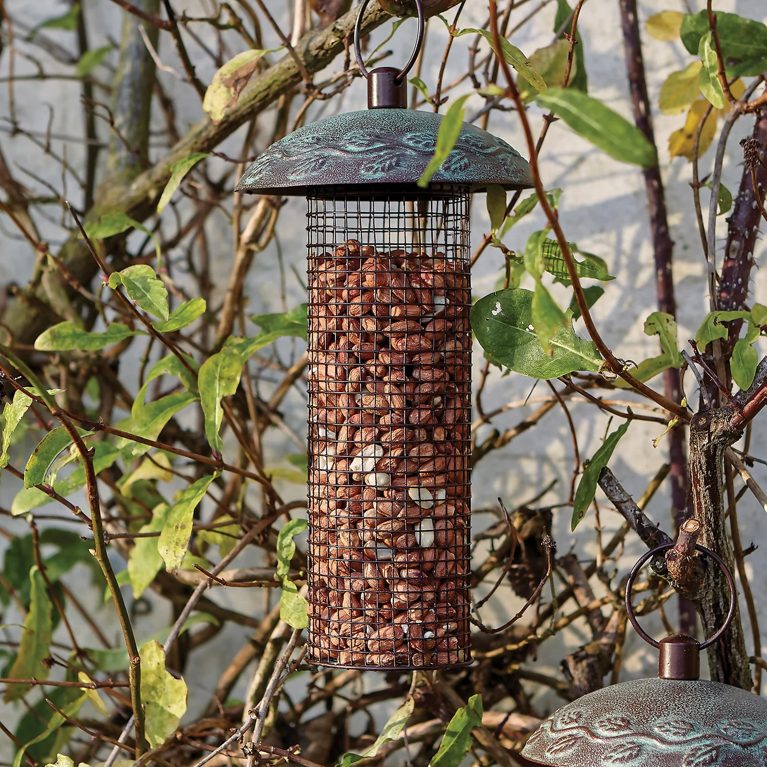 Peckish Secret Garden Peanut Bird Feeder features a decorative leaf design with an antique finish. The whole feeder is constructed of hard wearing metal. The feeders small mesh size makes peanuts a safe size for younger birds.