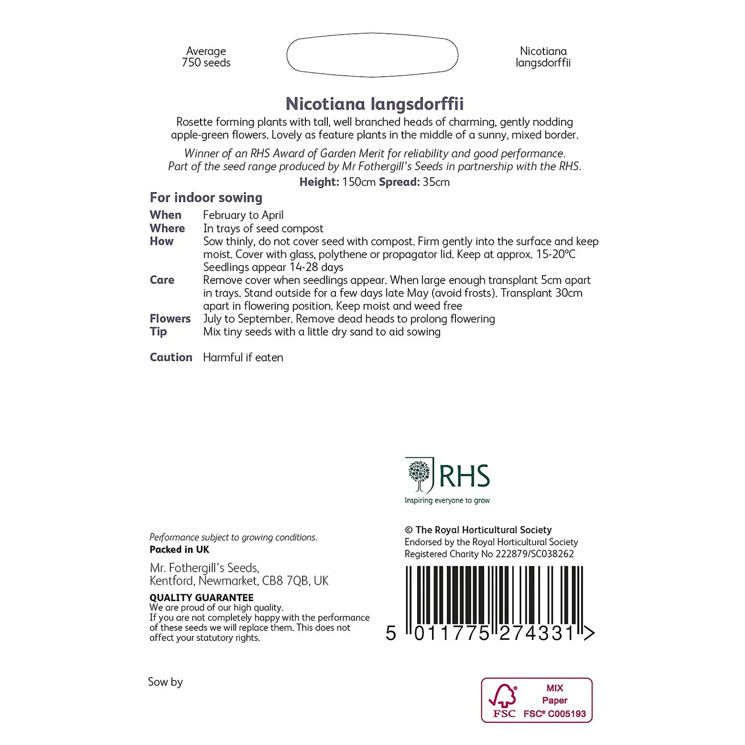 | Product Contains | 750 seeds approx. |