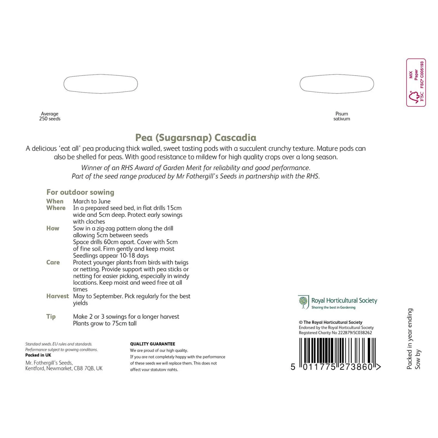 RHS Pea (Sugarsnap) Cascadia Seeds