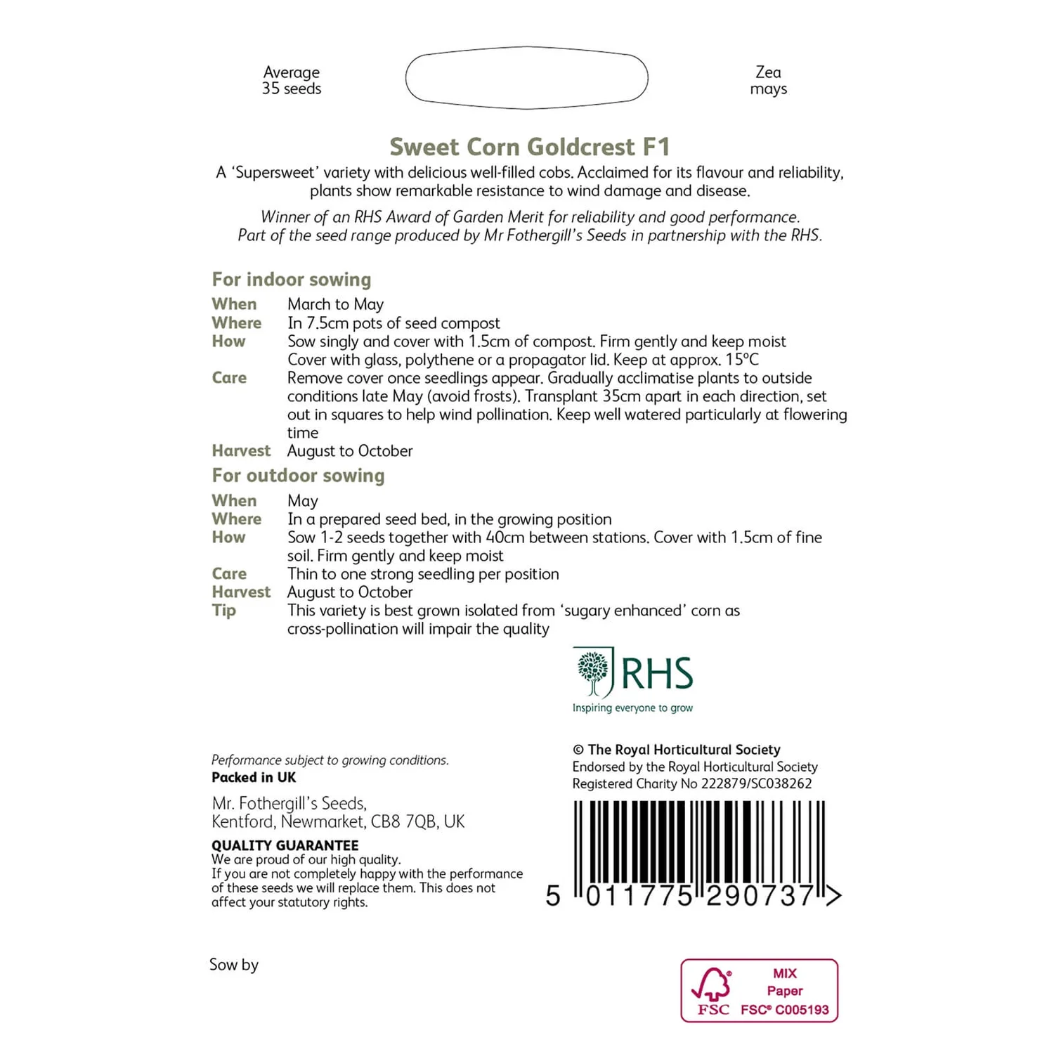 A ‘Supersweet’ variety with delicious well-filled cobs.