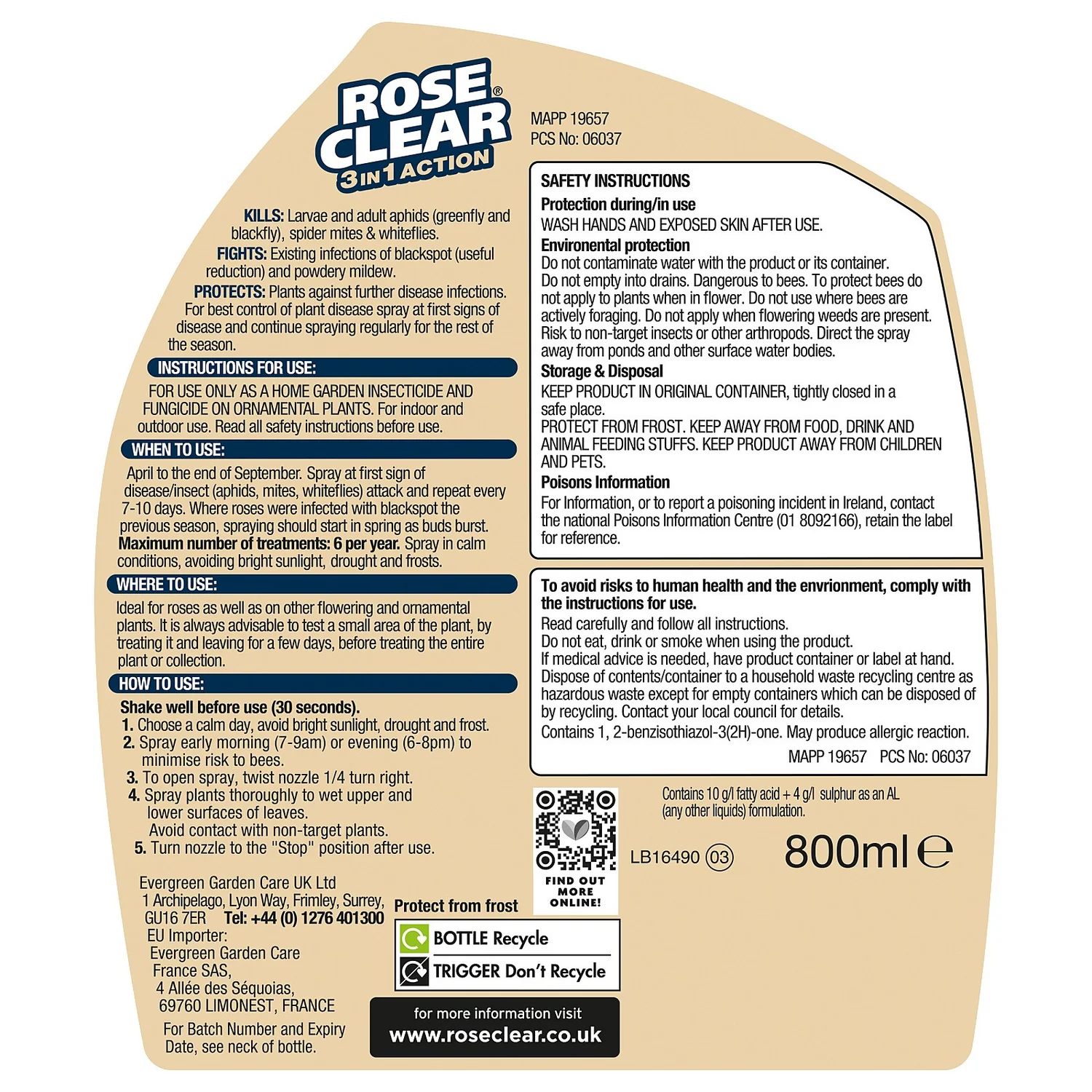 Controls black spot, powdery mildew and rust