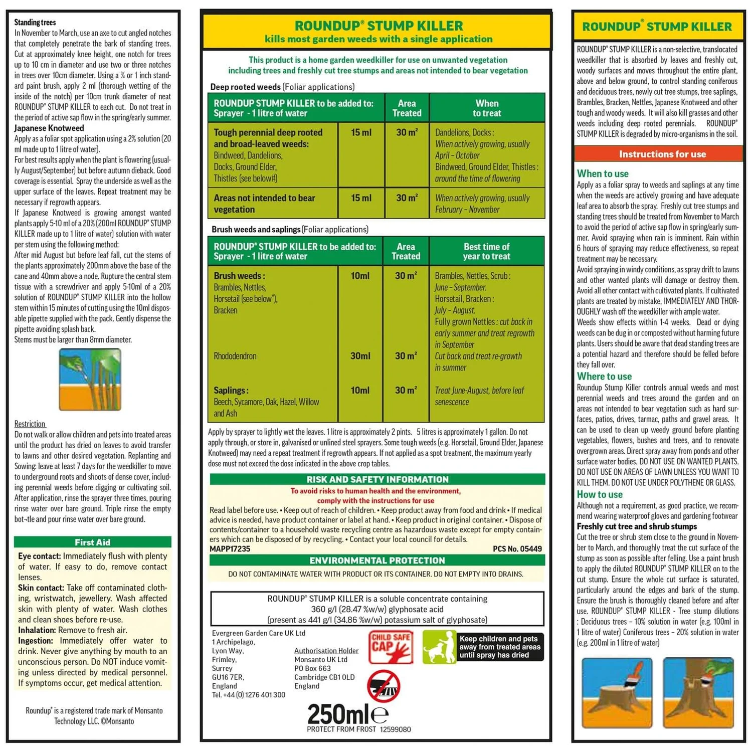 Roundup Tree Stump & Root Killer is a systemic weed killer for treating tough weeds like brambles, nettles, deep rooted and woody weeds and tree stumps.