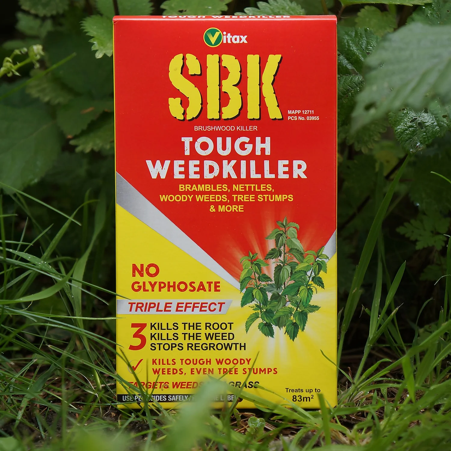 | Additional Information | This tough weedkiller has become a leading name for the effective control of brambles, thistles, nettles, dock, woody weeds and unwanted saplings and can also be used to kill off tree stumps. SBK Brushwood Killer has been specially formulated to kill weeds without harming grass and can be used safely in grassy areas but should not be used on fine turf. It is also ideal for treating neglected, non-crop areas. SBK should be used on tough and woody weeds in the spring/summer, and on tree stumps in the autumn/winter. |