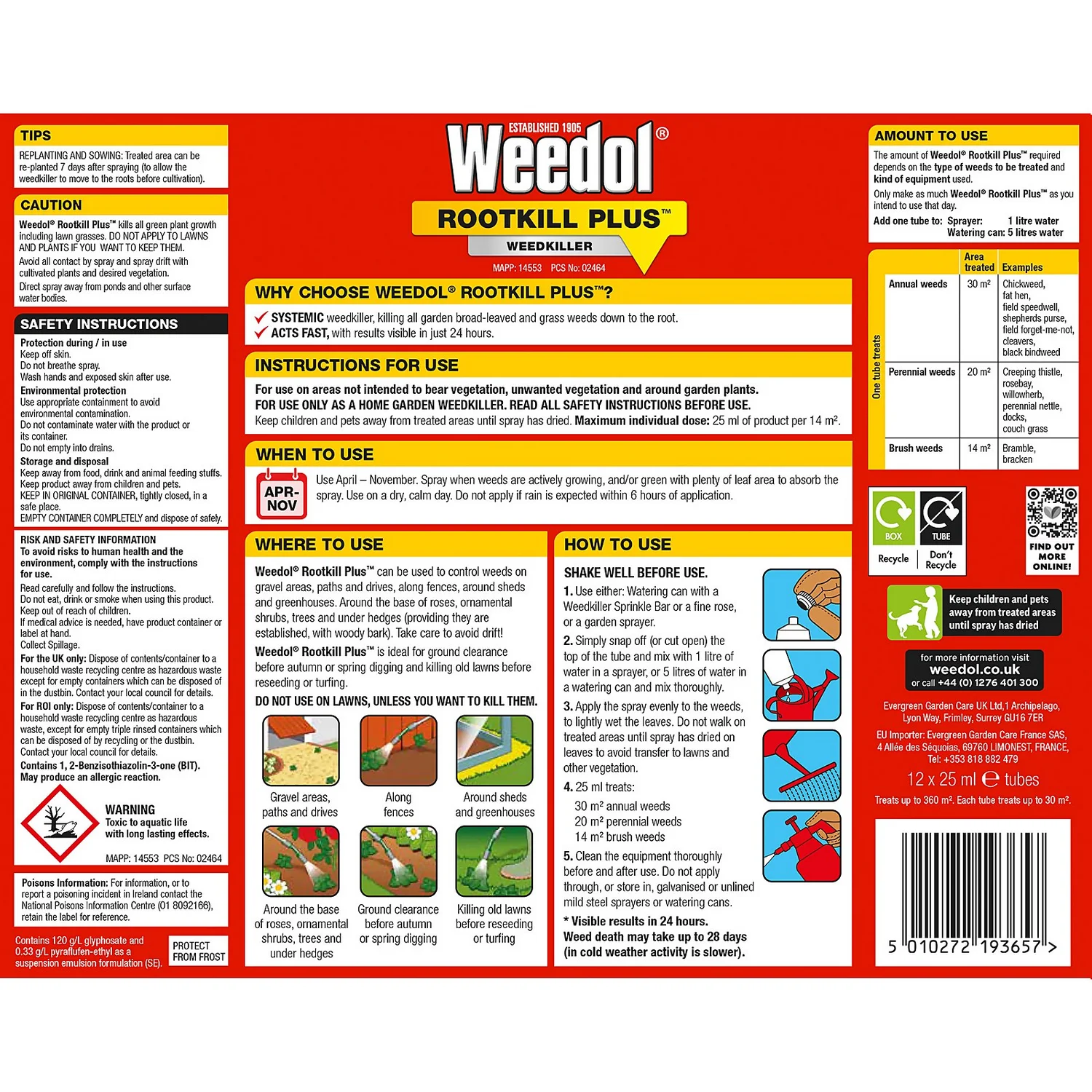 | Safety Information | Contains glyphosate and diflufenican. Use weed killer products safely. Always read the label and product information before use. |
